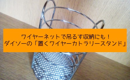 ワイヤーネットで吊るす収納にも!ダイソーの「置くワイヤーカトラリースタンド」。