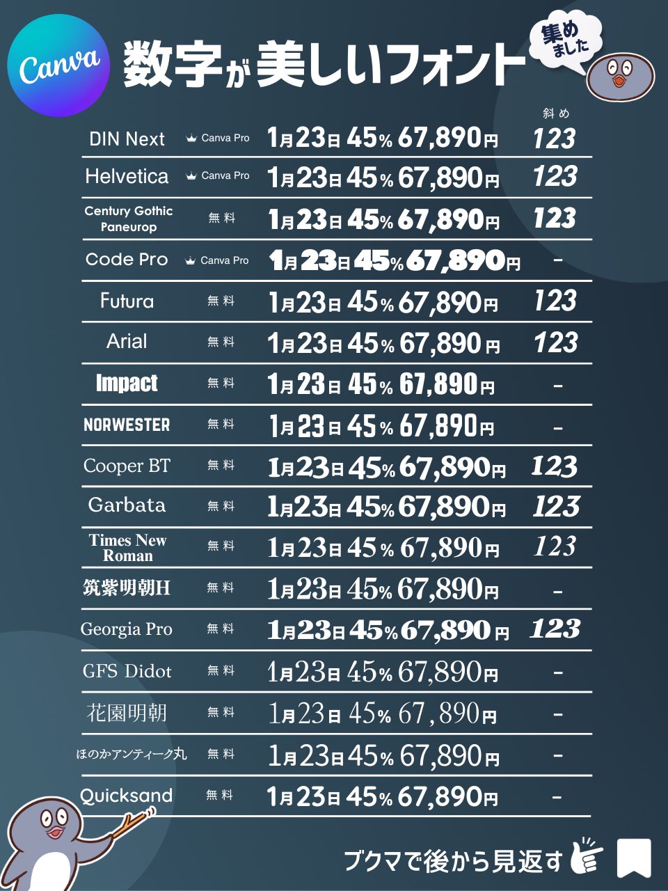 Canva 数字フォントおすすめ一覧日付や値段をきれいにデザイン!私のデザインブログ。