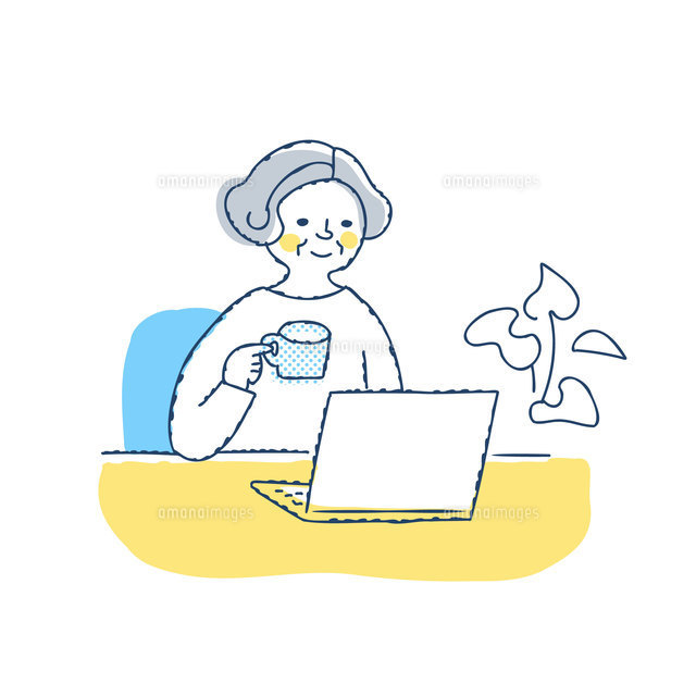 パソコン作業する女性のイラストのイラスト素材125132409- PIXTA。