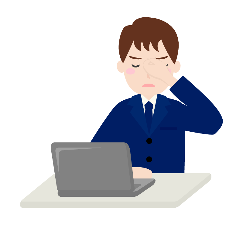 PC作業による目の疲れ 男性会社員のイラスト無料のフリー素材 イラストエイト。