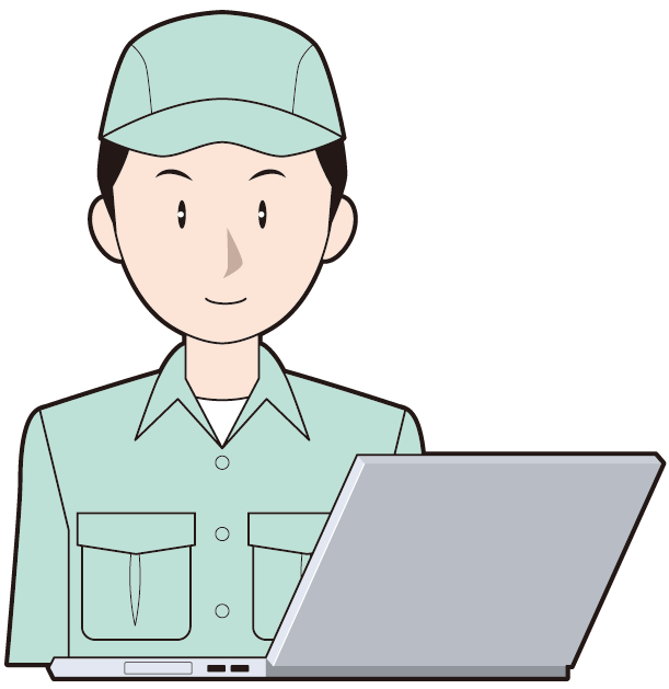 パソコンでチェックしている男性作業員のイラスト素材109293792- PIXTA。