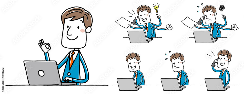 イラスト素材:ビジネスマン パソコン 操作 バリエーション Stock VectorAdobe Stock。