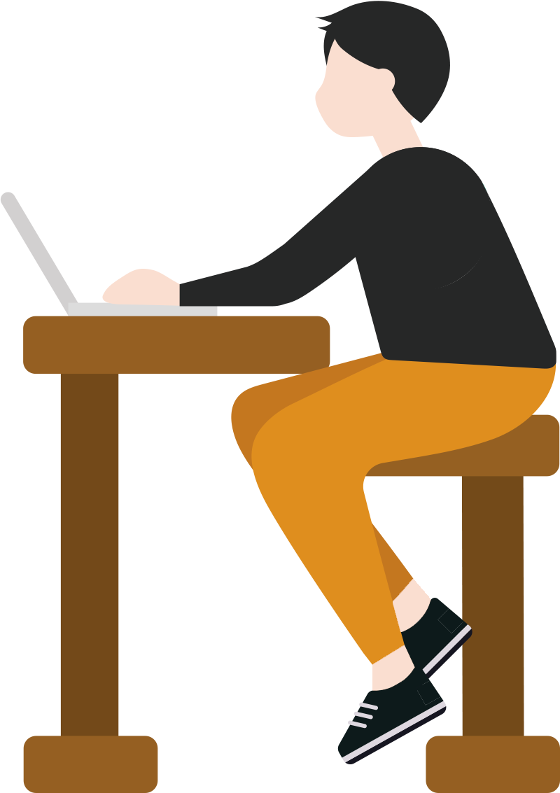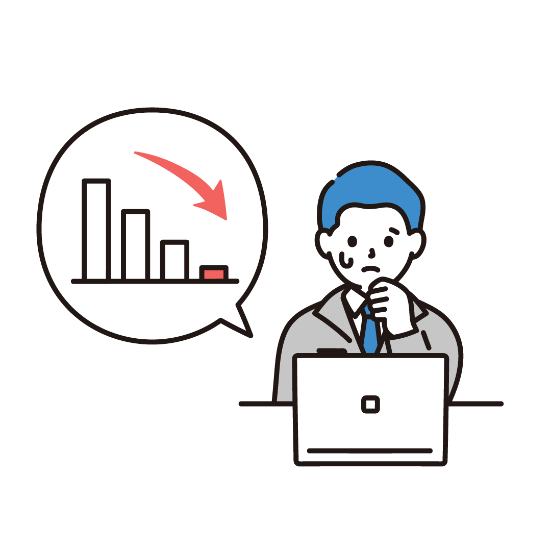 PCで作業する横を向いた男性のイラスト - ONWAイラスト。