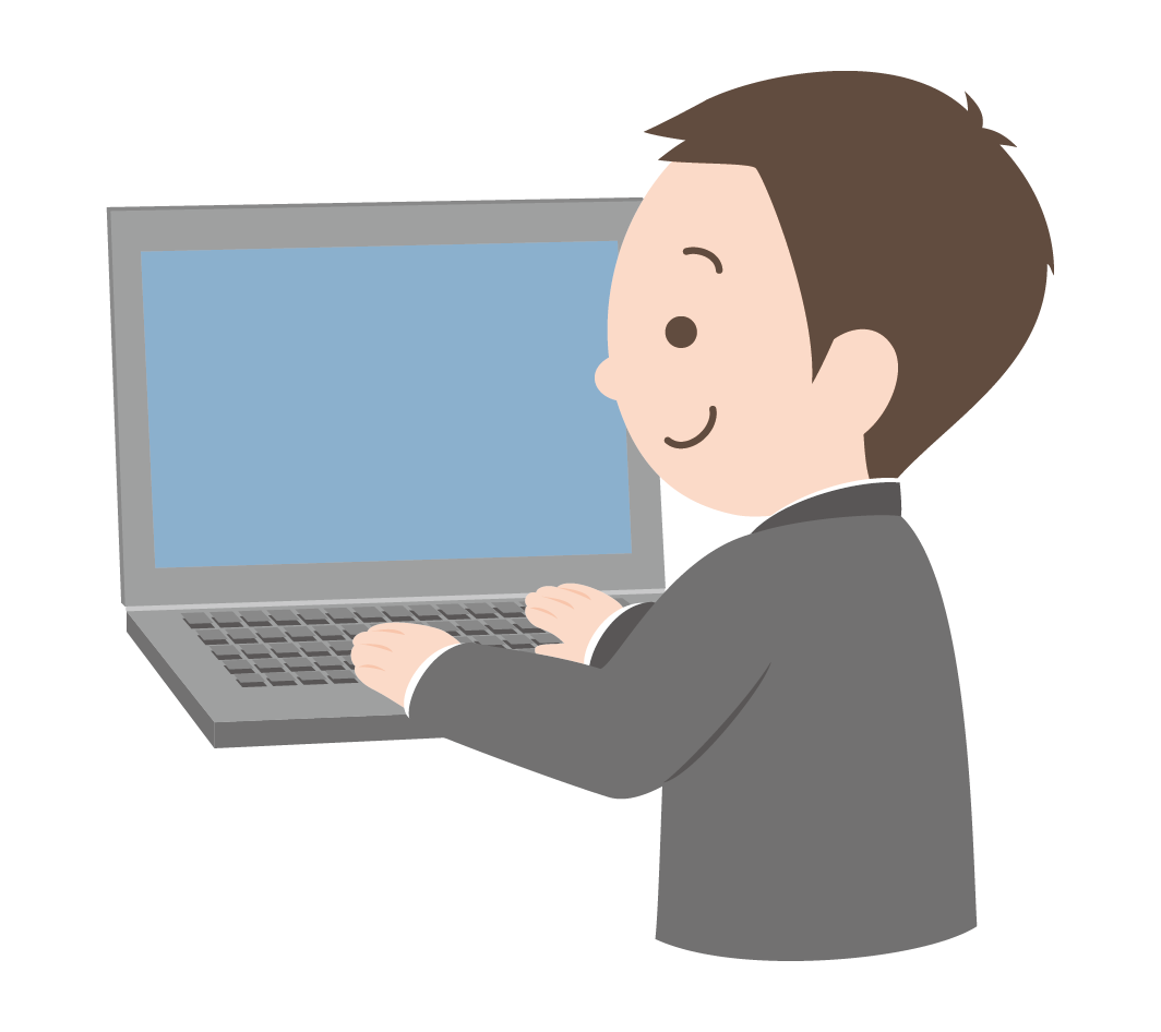 パソコン操作をする男性のイラストフリー素材 イラストミント。