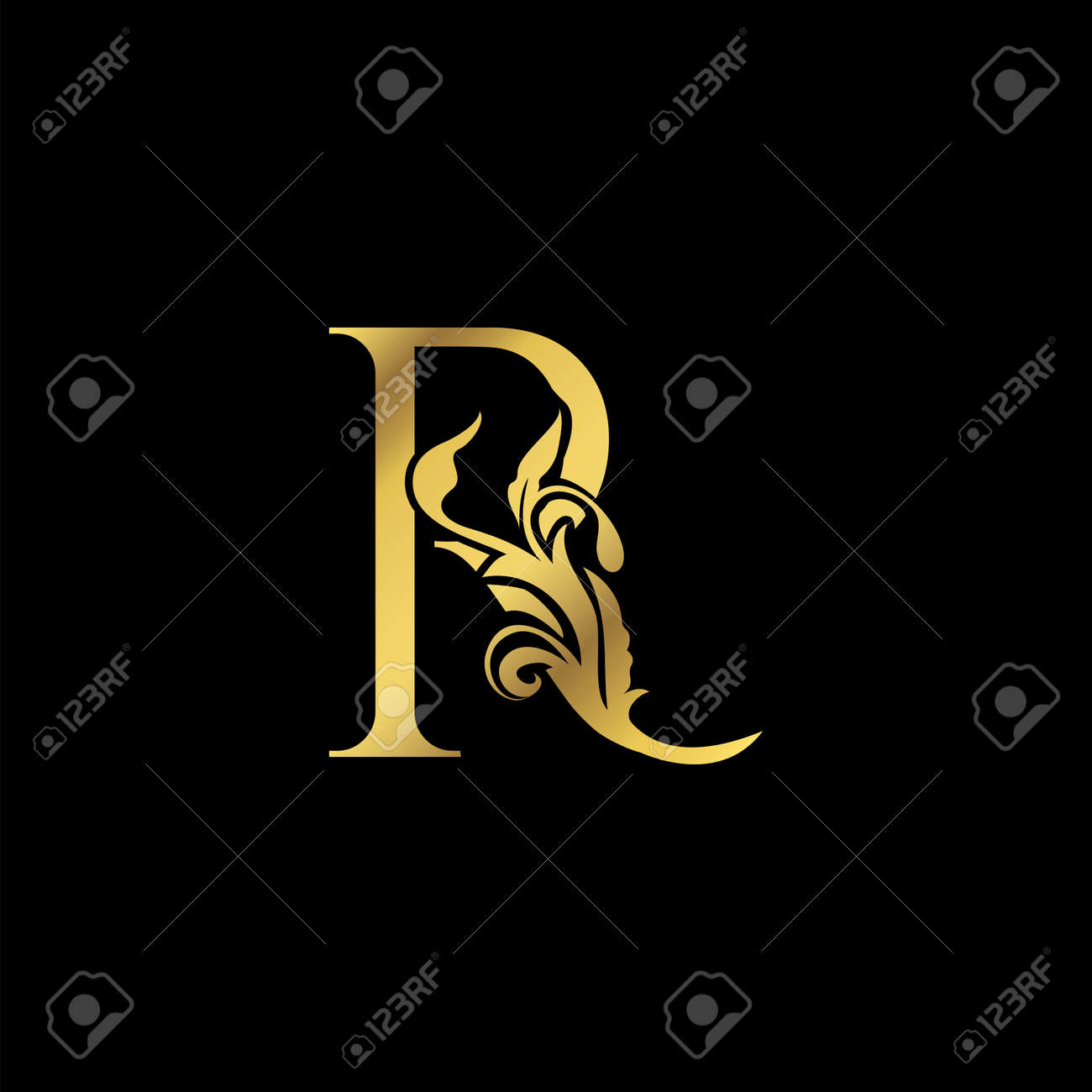 ゴールデンイニシャルRラグジュアリーレターロゴアイコンベクトルデザイン華やかな渦巻き自然花のコンセプト。のイラスト素材・ベクター Image156898630。