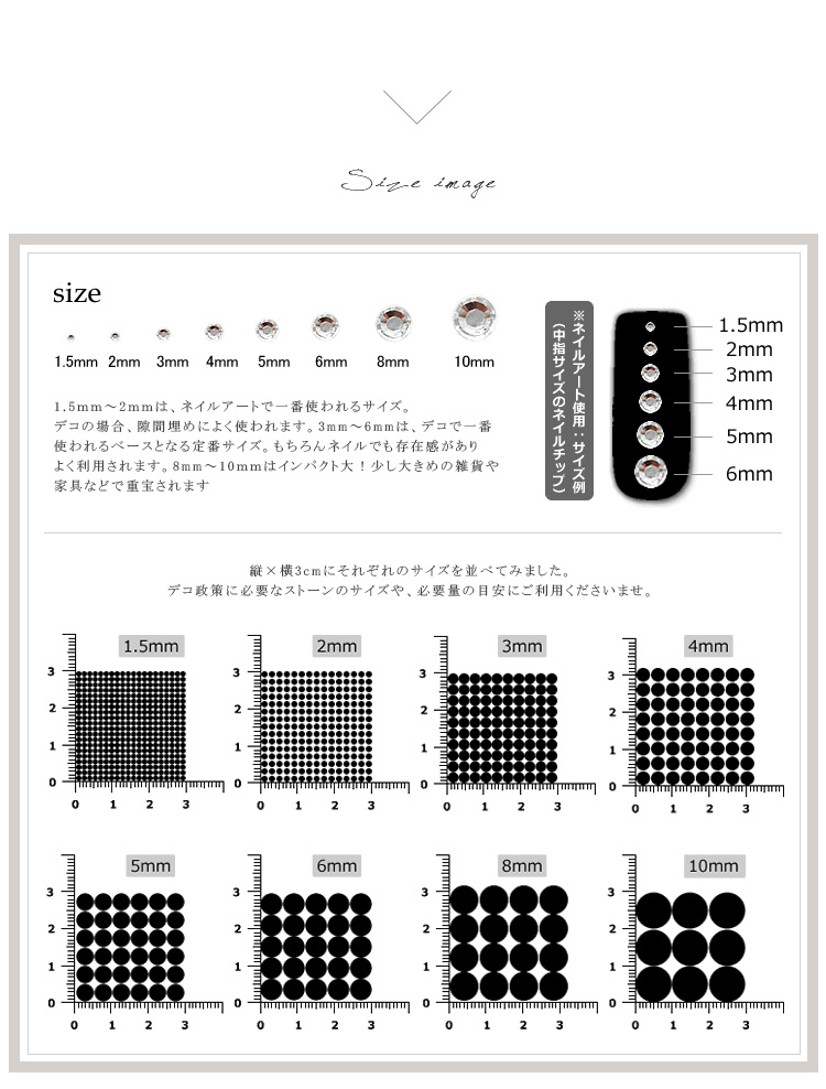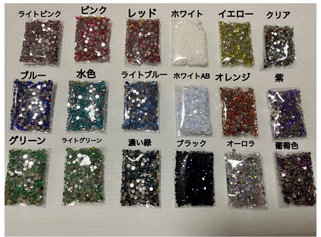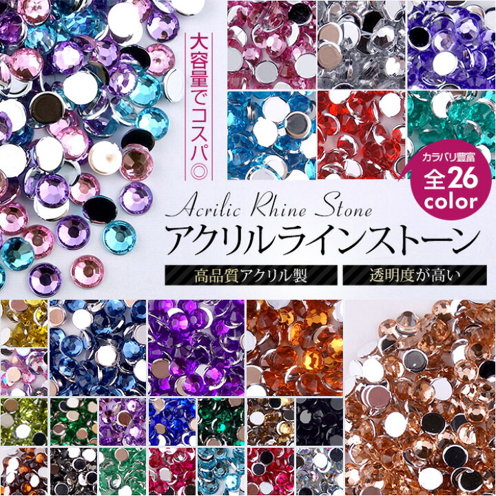 楽天市場 ラインストーン全26色 高品質アクリル製 大容量500粒〜200粒 定番ラウンド型 1.5mm 2mm 3mm 4mmの4サイズ アクリルストーンデコストーン デコうちわ 推し活 推し色 デコパーツ キラキラ レジン封入 ジェルネイル ネイルアートに 12個ご購入でMIXストーン進呈。