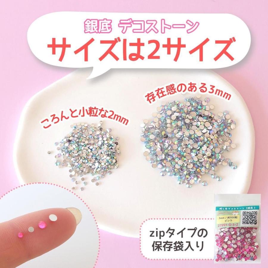 ラインストーン 大容量 約500粒 推し色デコストーン 銀底 2mm 3mm アクリルストーン ラウンド ビジュー デコうちわ 推し活 セット ネイル選べる2サイズ各11色。