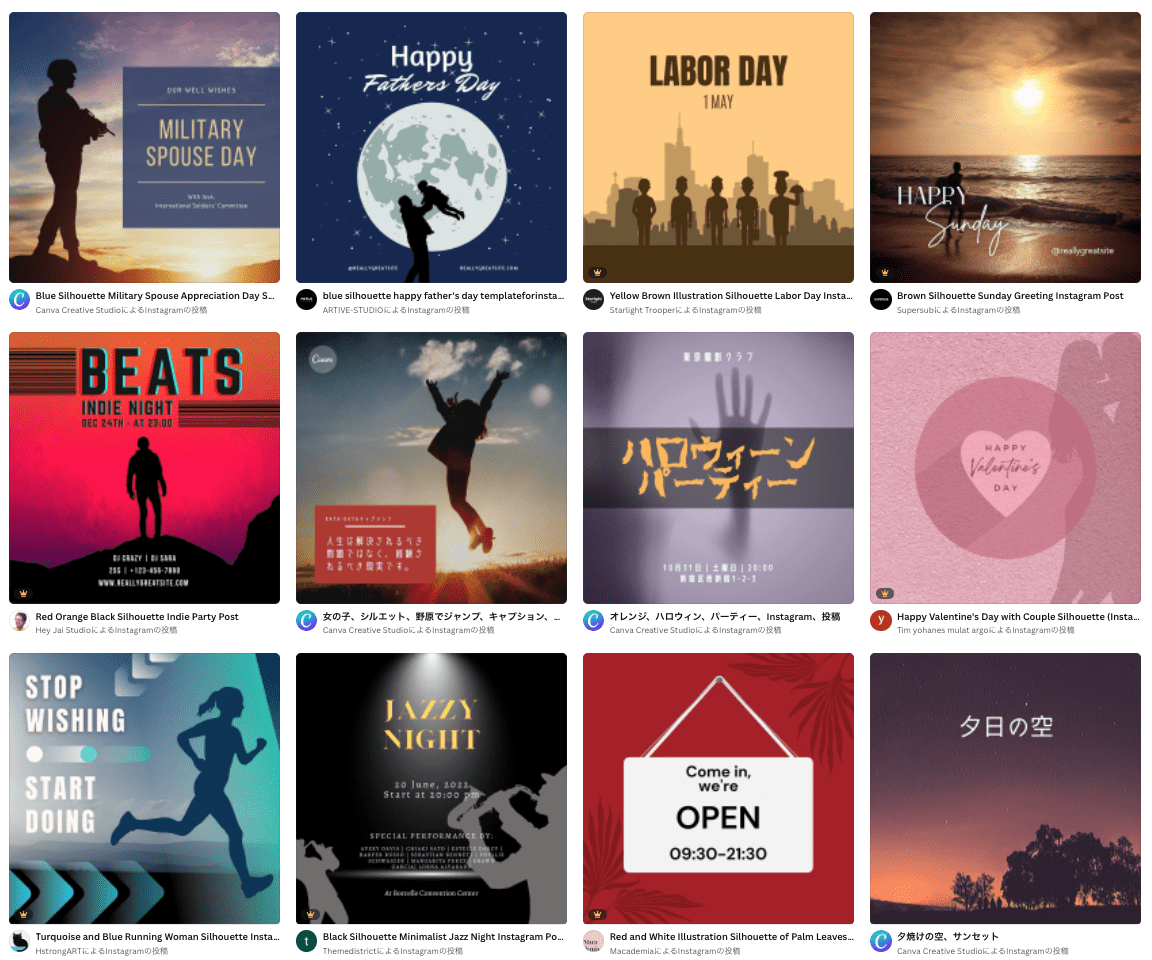シルエットイラストでデザインを無料で作成!Canva。