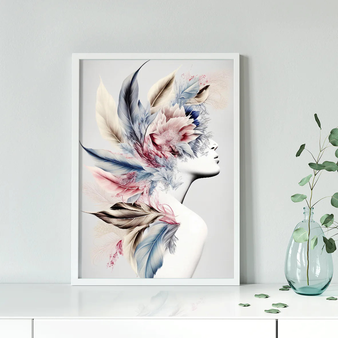 アートポスター 女性シルエット フェザーフローラル パステル 北欧デザイン モダンインテリア – FashionWallArt。