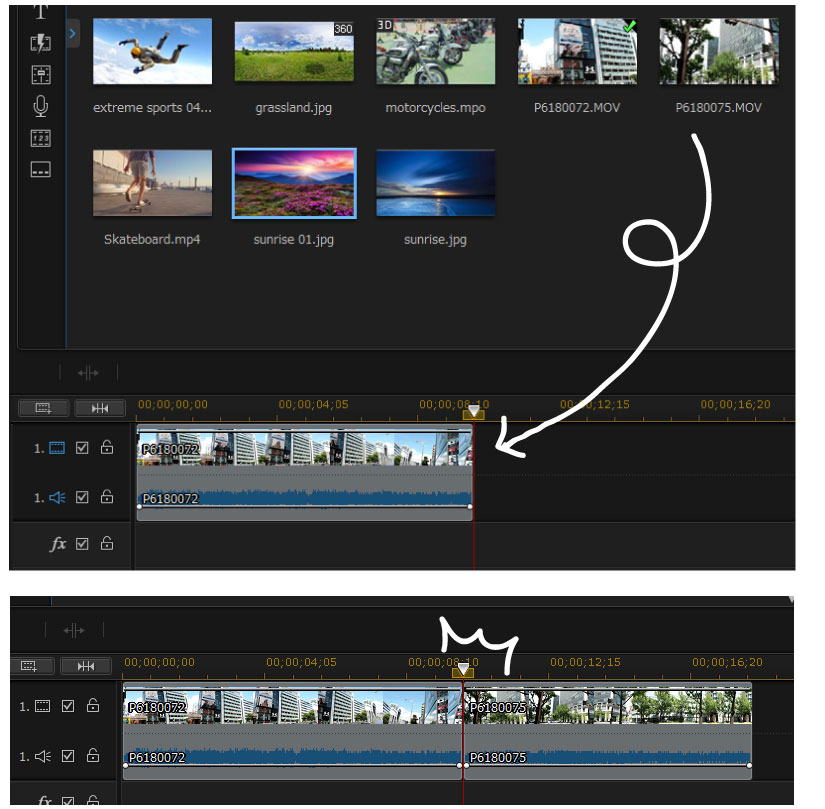 PowerDirectorを使って動画をつなげて結合させる方法。
