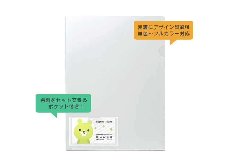 名刺ポケット付き A4クリアファイルノベルティ制作ノベルティ制作ならセラフィムワン。