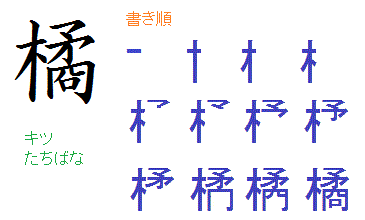 橘 たちばな ◇柑橘類 ときじくのかくのこのみ 右近の橘・左近の桜: 漢字分解~漢字の覚え方・書き方。