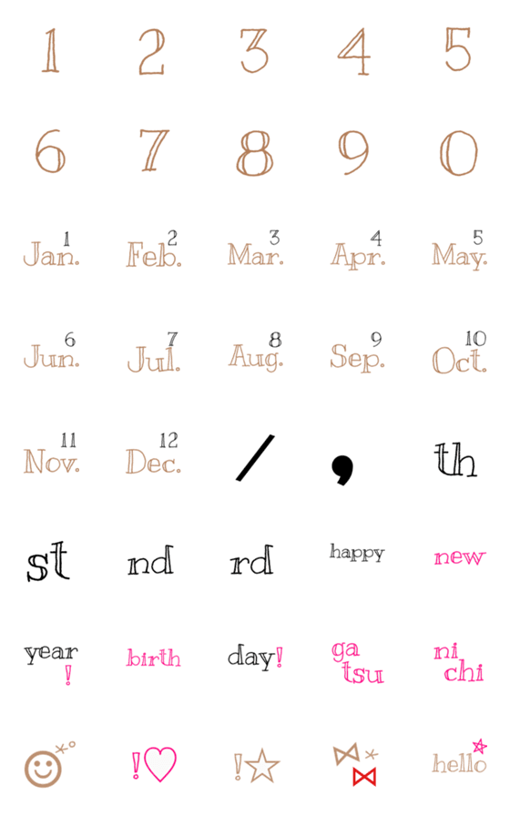 可愛い 数字、日付をゆるーく♡☺︎のLINE絵文字画像、情報など。