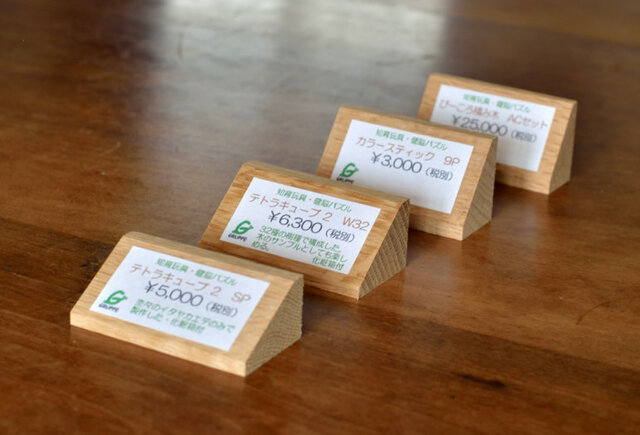 ミズナラで作ったシールを貼る値札プレート 値札立てiichi 日々の暮らしを心地よくするハンドメイドやアンティークのマーケットプレイス。