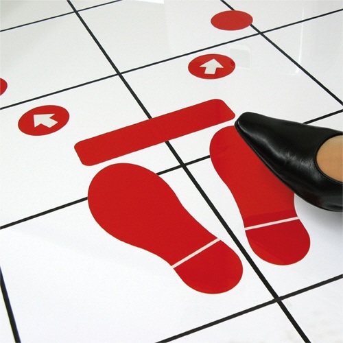 同色5枚1セット フロアサイン 足跡マーク シールタイプ 角丸 床貼り 全8色 直径23cm×23cm 日本製 足跡マーク ソーシ フロアサイン足型とまれ 幅400mm×高さ400mm シールタイプ 路面標示材 駐車場向け アトムペイント保安用品のプロショップメイバンオンライン。