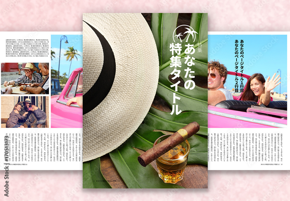 A4変形版の日本語縦組み雑誌 特集レイアウト付きStock テンプレートAdobe Stock。