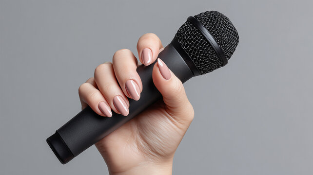 ワイヤレスマイクを持つ女性の手元の写真素材FYI07987463ストックフォトの Qlean Market キュリンマーケット。
