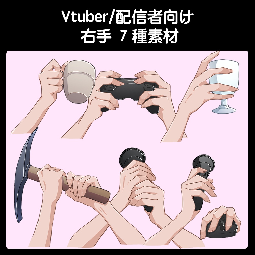Vtuber 配信者向け 手 素材右利き・細身- 猫本 ねこあし - BOOTH。