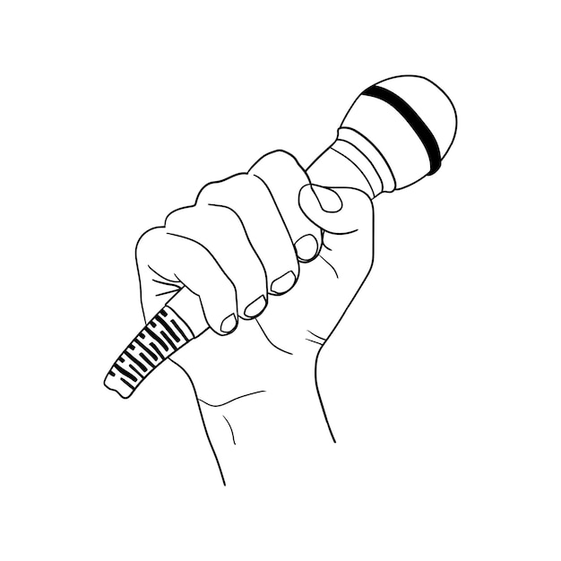 マイクを持っている手のイラストマイクを持っている手の手描きのアイコンPremiumベクトル素材。