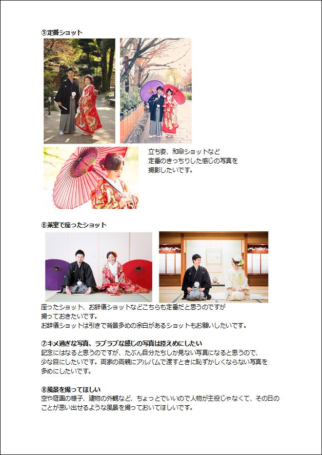 前撮り指示書の書き方・パソコンやスマホでの作り方をご紹介!大阪前撮り からん和装のフォトウエディング。
