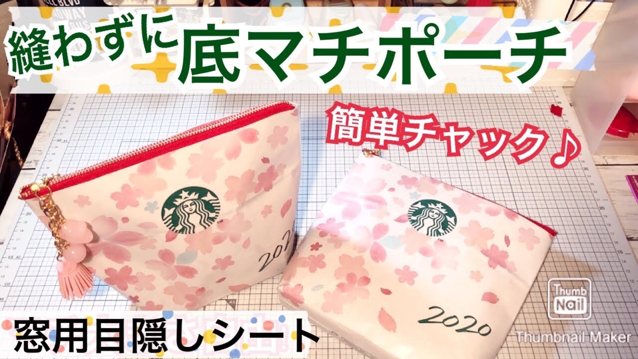 縫わないマチつきポーチ🌸100均DIY スタバ紙袋リメイクで作る春色桜ポーチHow to make a pouch made withoutsewing。