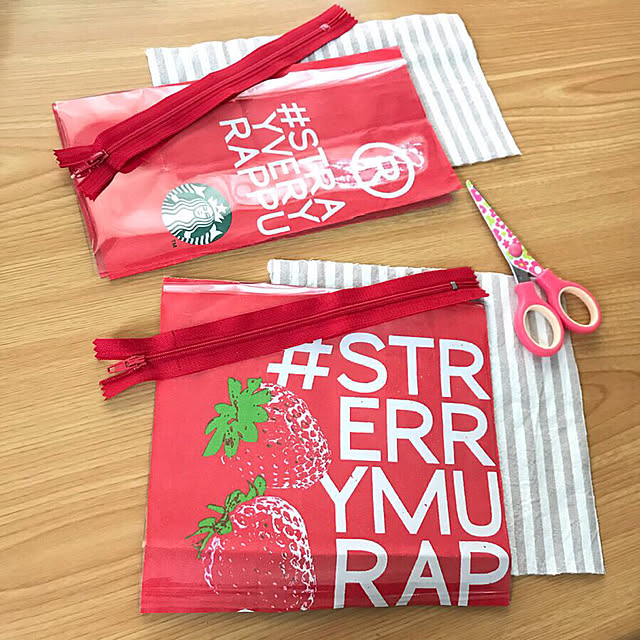 ☆ 43 リメイクポーチ ハンドメイド ビニールポーチ スタバ 紙袋リメイク。