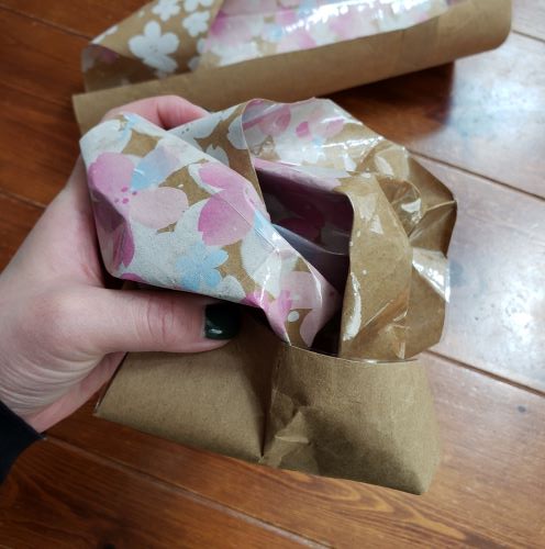 縫わない! 紙袋でマチ付きフラットポーチDIY 作り方。