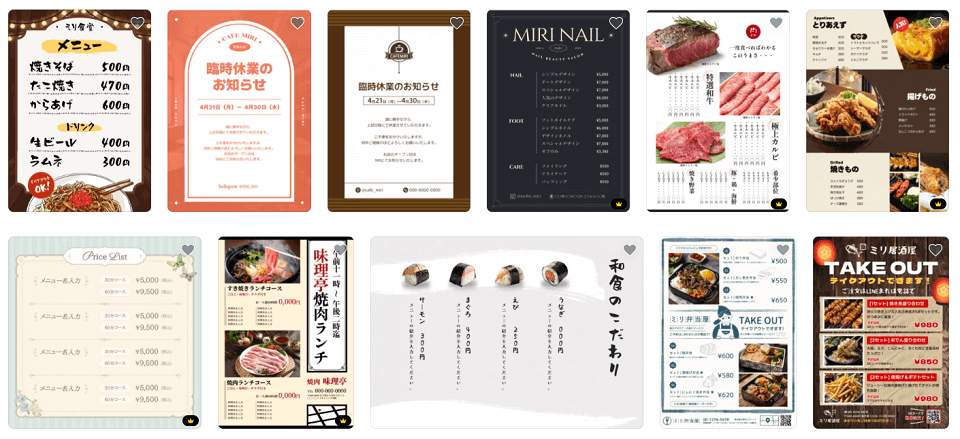 お品書きテンプレートでおしゃれなデザインを無料で作成!Canva。