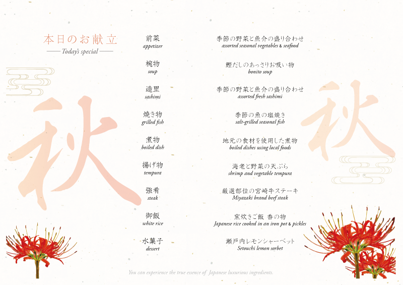 コース料理のお品書き作成・印刷に特化した専門店・お品書きドットコムお品書きドットコム。