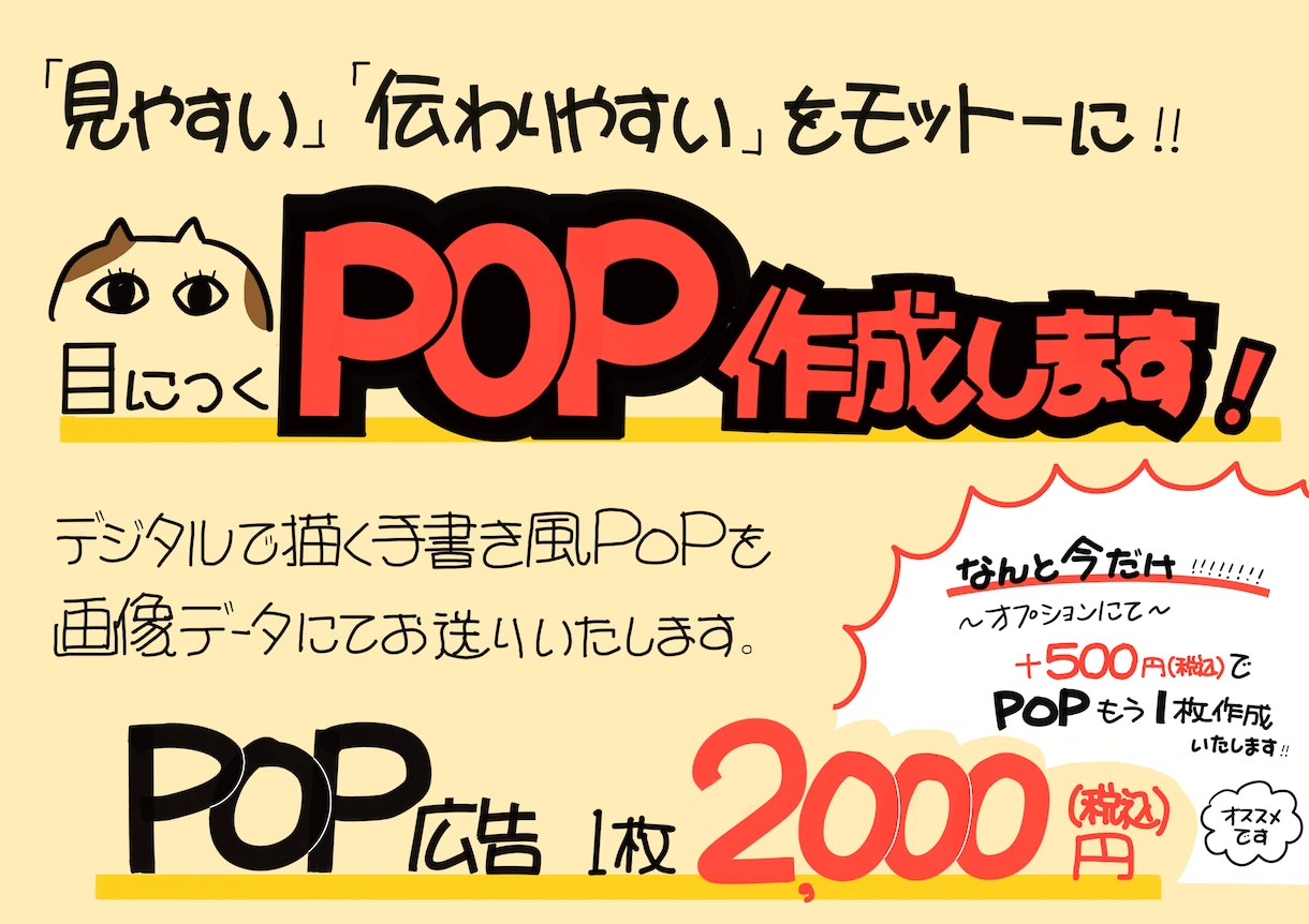 かんたんなイラストつきでポップ広告を作ります 手書き風のポップを作成いたします。ココナラ。