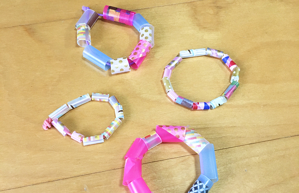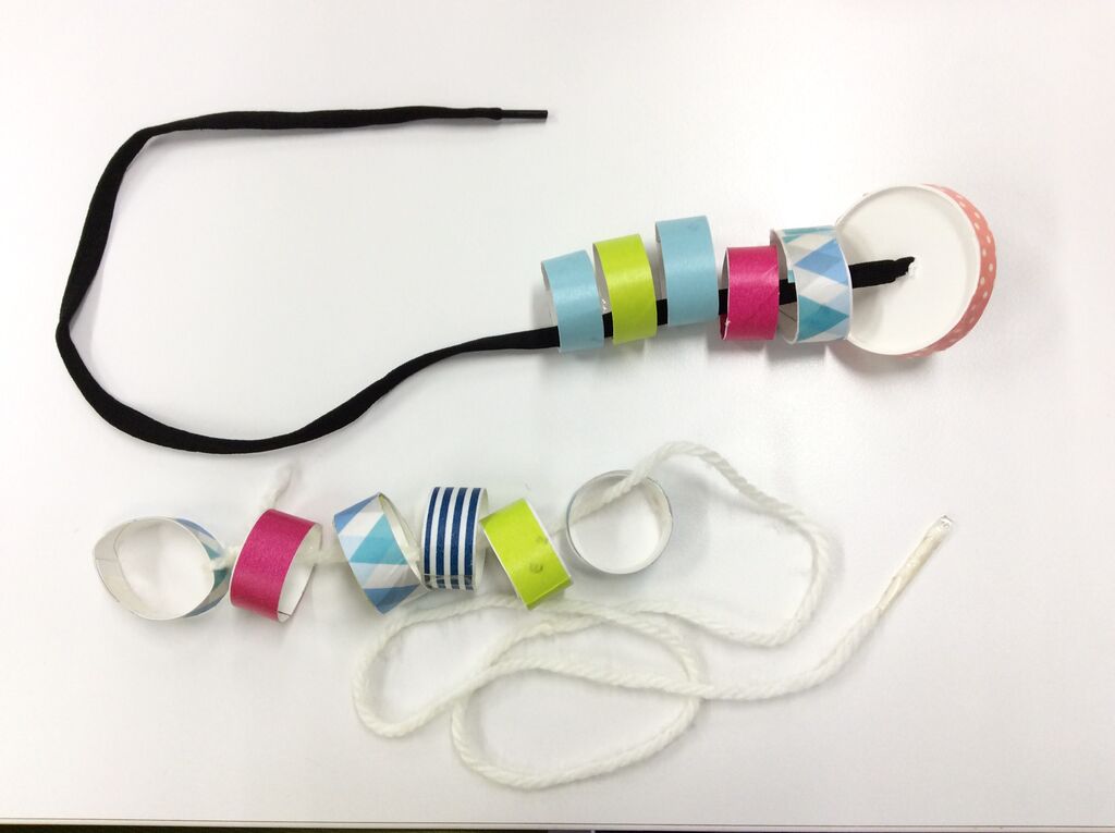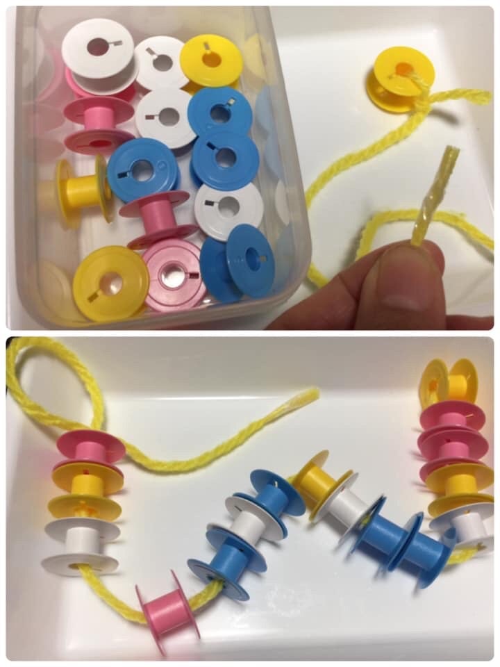 手作りおもちゃ『雨の日に最適♫タピオカストローのひも通し』きた先生の手作りブログ。