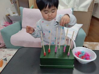 子どもの指先を鍛える、ひも通し♪のら犬ママの子育て雑記帳。