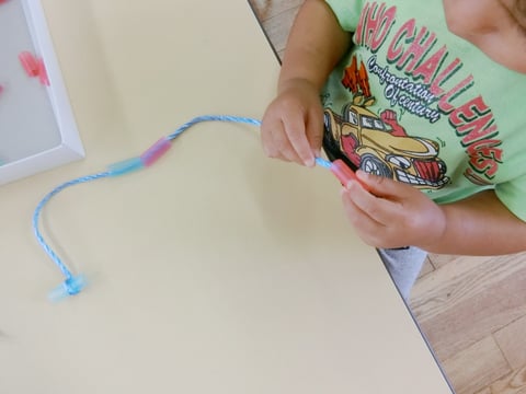 指先トレーニング ストローひも通し編 – 岡崎市の放課後等デイサービス「COCORO東岡崎教室・籠田公園教室 」。