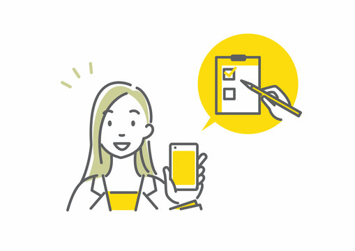 アンケートに答える女性。スマホで入力作業をしている人。のイラスト素材243131496 毎月1点無料 フリー のストックフォト イメージマート。