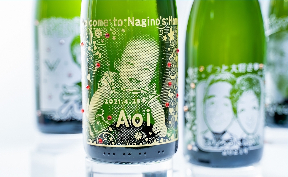 シャンパン・スパークリングワイン・ワインにLuvArtオリジナルデザインと、顔写真が彫刻加工されたデコレーションボトル”LuvBottle” LuvArt。