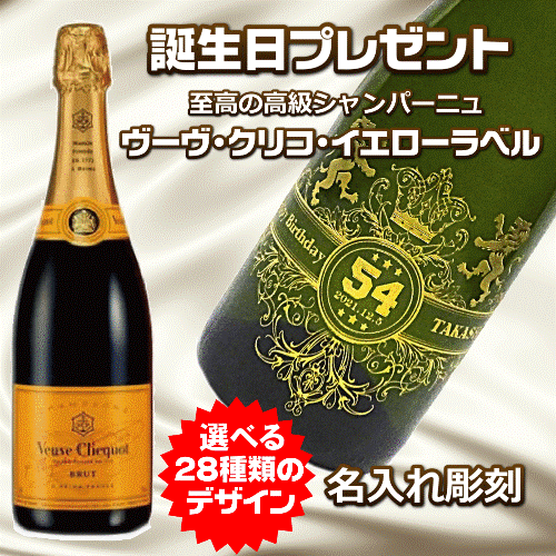 誕生日名入れシャンパン ヴーヴクリコ ヴーヴ・クリコイエローラベル 辛口シャンパン シャンパン 名入れ彫刻 高級シャンパン 高級酒 誕生日プレゼントバースデープレゼント 誕生日パーティーの手土産 -オリジナルギフト工房グラスホッパー - プレゼント&ギフトの。