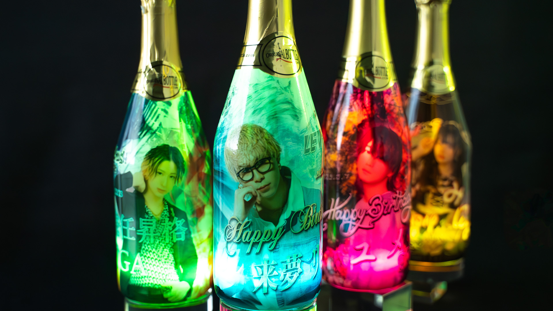 写真ラベル+メタリックボトル!オリシャンオリジナルシャンパンキャバクラホストクラブコンカフェ。