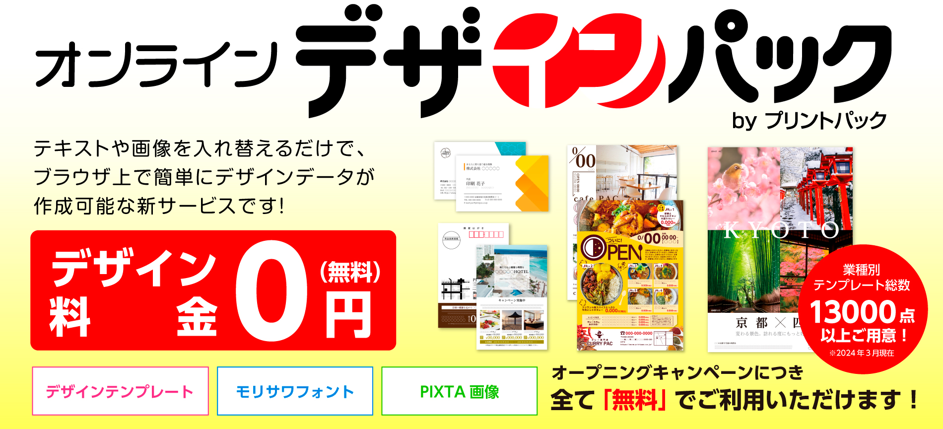 オンラインデザインパック無料テンプレートからのデザイン作成は 印刷通販プリントパック。