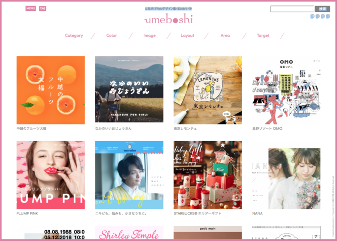 女性向けWebデザイン集「umeboshi」女性的・女性向けホームページ制作・デザインならカズミア株式会社。