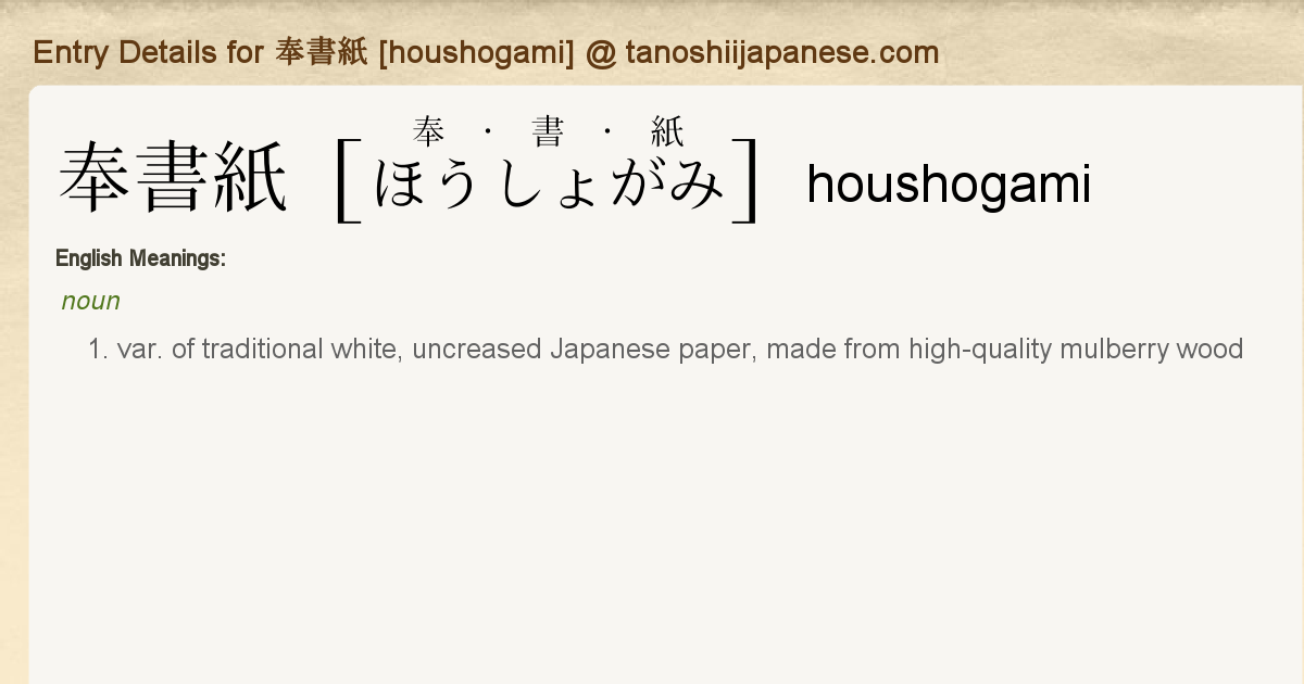 Entry Details for 奉書紙houshogami- Tanoshii Japanese。