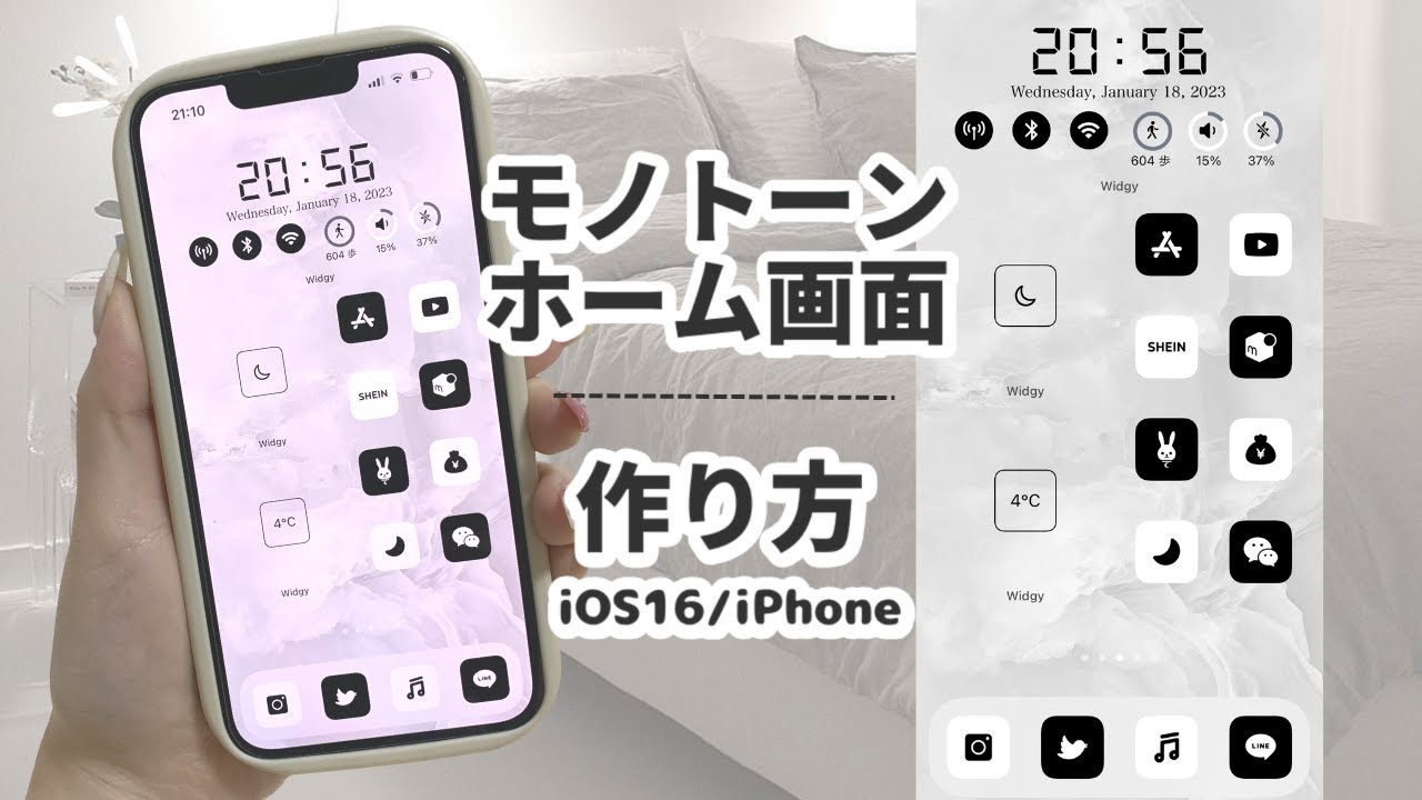 iOS16 おしゃれモノトーンホーム画面の作り方 ウィジェット無料配布。