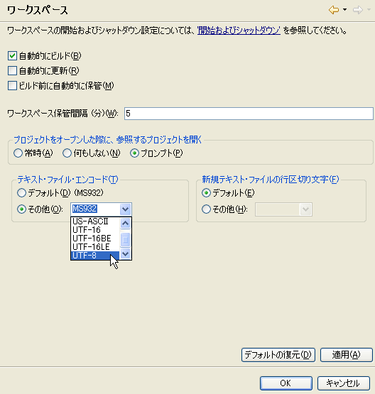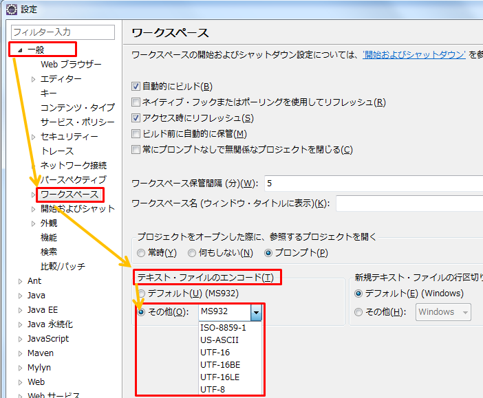 テキストファイルの文字コード - 基本設定 - Eclipse入門。