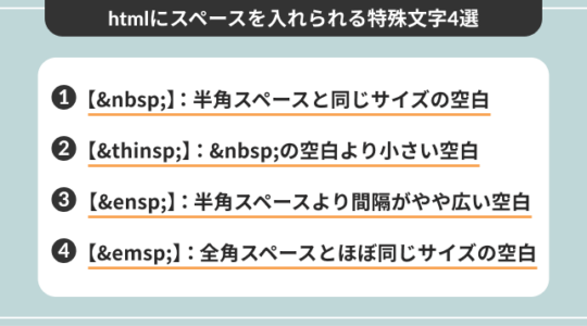 HTML スペースを入れる2通りの方法 サンプルコード付き- WEBCAMP MEDIA。