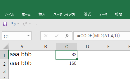 Excelテクニック and MS-Office recommended by PC training : Excel。空白のセル。全角半角スペースの有無はCODE関数で確認できます function:CODE。