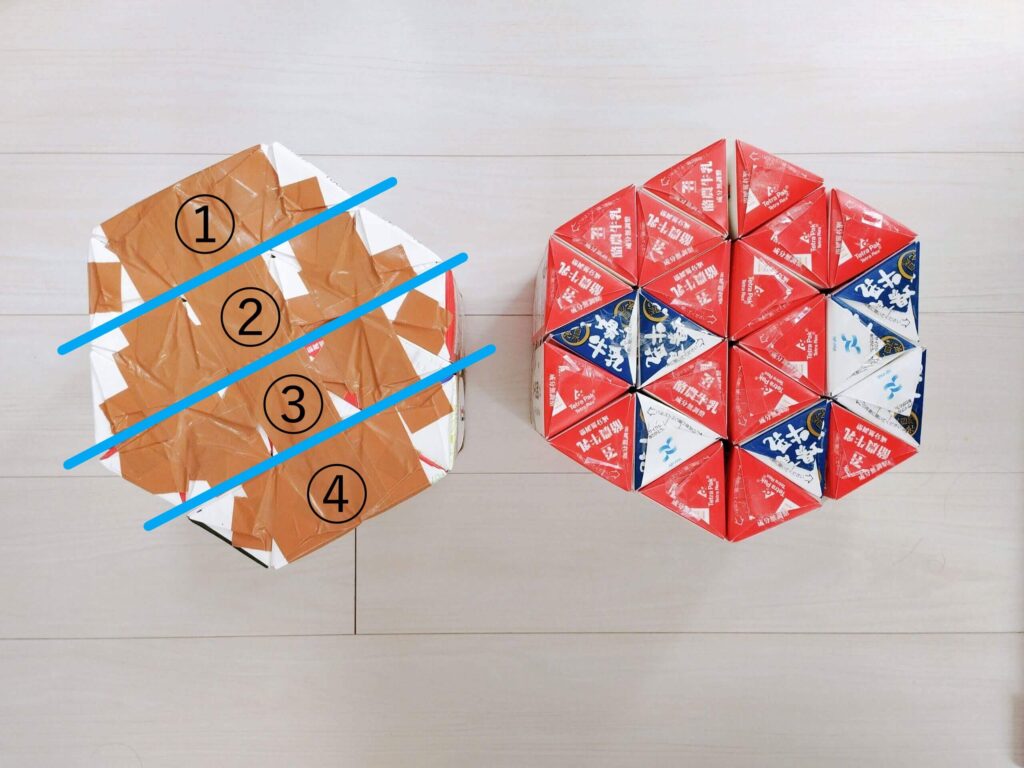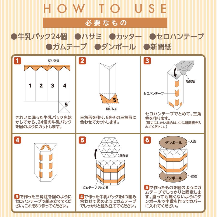 牛乳パック椅子の作り方とカバーの張り方 六角形 牛乳パック工作工作・自由研究All About。