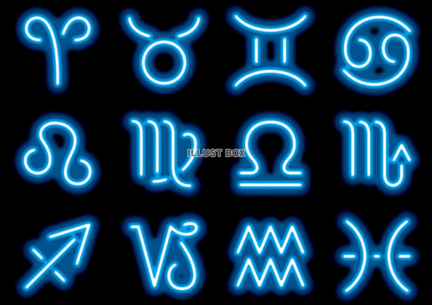 ネオンサイン風 12星座の記号・マーク アイコンセット:イラスト無料。