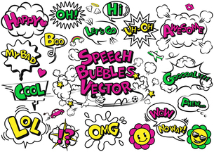 楽しいアメコミ風吹き出しとイラストのセット 文字ありのイラスト素材FYI08222696ストックフォトの QleanMarket キュリンマーケット。