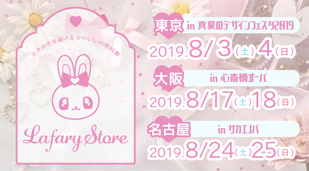 ハンドメイド作家によるガーリーなアイテムや、「ラヴちゃん」のグッズも♪ ゆめかわウェブメディア『Lafary ラファリー 』POPUPショップが東京、名古屋、大阪にて開催!詳細記事SGS109。