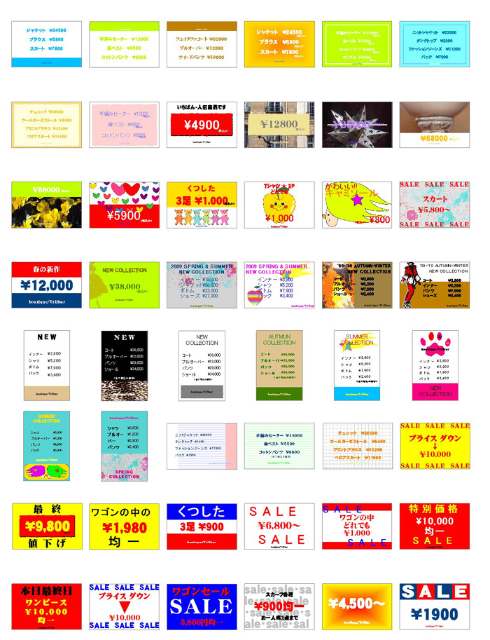 スグできる!!POP アパレル編 テンプレート素材サンプル一覧 - TRISTAR。