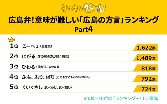 意味が難しい「広島の方言」ランキングを調査!1位は『こーへぇ』に決定!山口新聞 電子版。